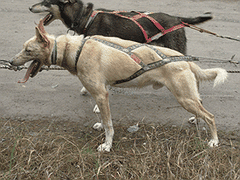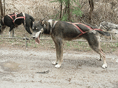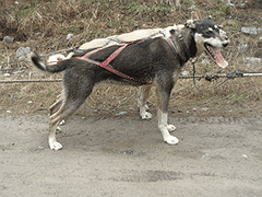 Lightning is a total clown and one of the most talkative dogs in the yard. He was one of the most consistently reliable dogs on the Quest team. Lightning sired a litter of pups in 2009 with Etna and they are all VERY uniform, good-natured, and performing well.