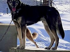 We purchased Brave from my uncle Jason's kennel sell out in the fall of 2017. He excelled in his first year of training and racing. He finished everything he started, despite coming into our kennel the end of October and getting a late start in the training season. Brave has incredible stamina and seems totally unaffected at the end of races, leaping and screaming for more. He is a huge power house and trotting machine. Brave fits the appetite and attitude motto perfectly!